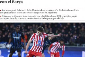 世体采访了阿尔瓦雷斯身边的消息人士,后者表示此事纯属子虚乌有,任何转会意愿都应该首先直接经过阿尔瓦雷斯的东家马竞。球员经纪人不久前也曾表示,巴萨及任何潜在追求者都未与他有过联系。