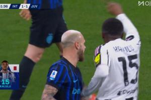 体育资讯02月15日讯 尤文vs国米第42分钟,米雷蒂草率一传被断,卡卢卢染黄!两黄变一红被罚下,尤文十人作战!
