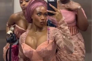 这位阿森纳球星的女友在Instagram快拍中分享了多段婚礼当天的视频,庆祝这一美妙时刻。其中一张照片里,她与另外两位宾客在电梯里自拍合影,三人均身着惊艳的粉色礼服。
