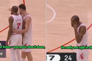 GIF-申京指点杜兰特,杜兰特随后摊手+摇头,还对场边方向抱怨地指了指自己的头