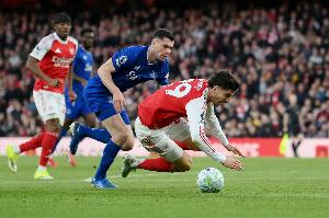 在3月14日枪手主场2-0战胜埃弗顿的第24分钟,哈弗茨在迈克尔·基恩的接触下倒地。主裁判安迪·马德利允许比赛继续进行,而VAR裁判斯图亚特·阿特维尔认为接触“极其轻微”。但回放显示,埃弗顿后卫无意中踩到了哈弗茨的脚。
