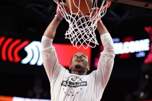 上半场比赛,混音球员扬布拉德进攻端状态不错,里突外投效率在线的同时还能造杀伤,他出战21分钟,7中4,三分3中2,罚球5中5砍下20分5篮板2助攻。