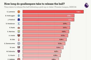 英超各队门将平均抱球时间:曼联断层第一布莱顿第二,阿森纳倒三