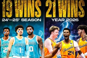上赛季黄蜂19胜63负;2026年至今他们21胜10负。